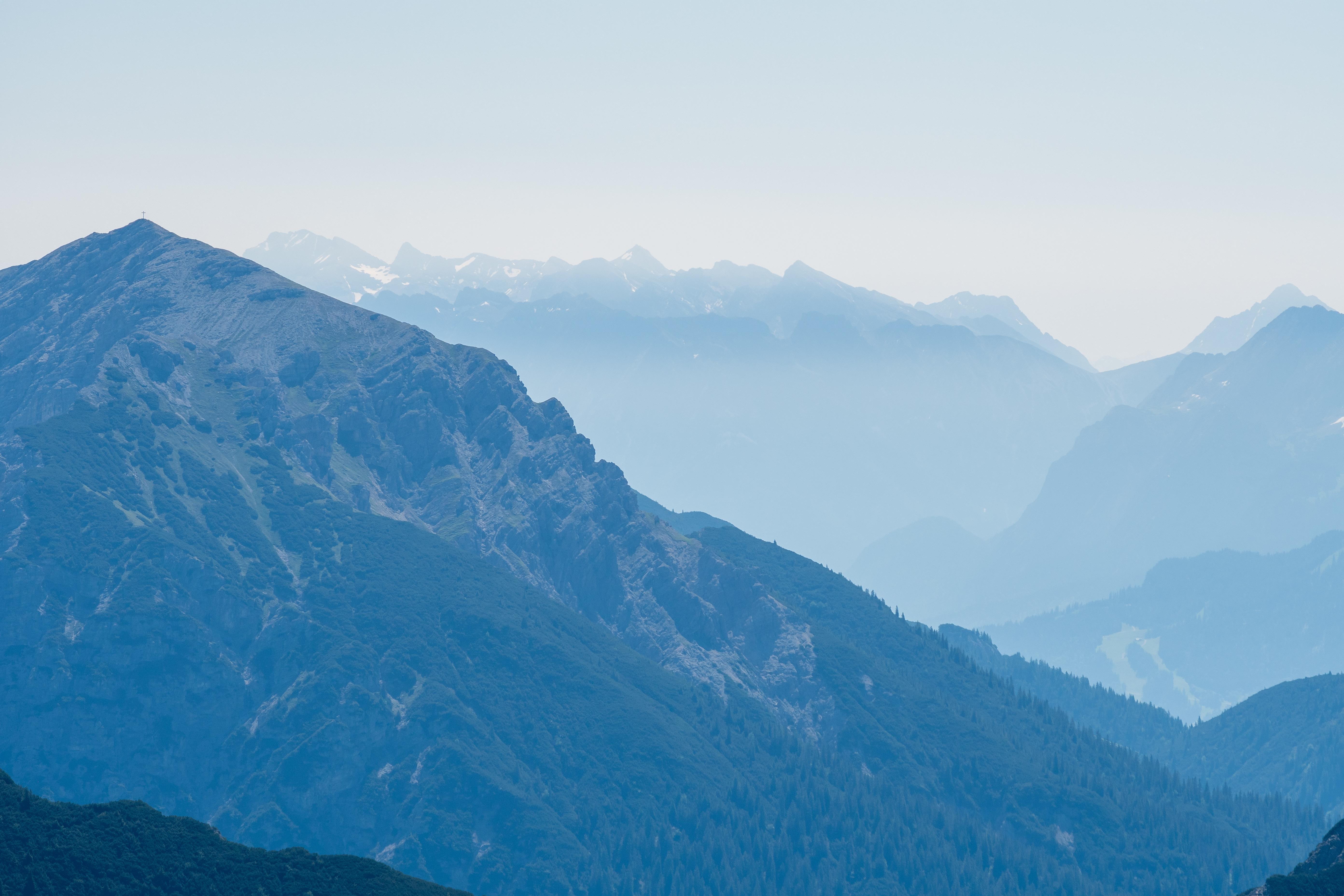 ca. Bildmitte die Notkarspitze, hinten rechts sind Rißkopf, Krottenkopf und Guffertspitze erkennbar