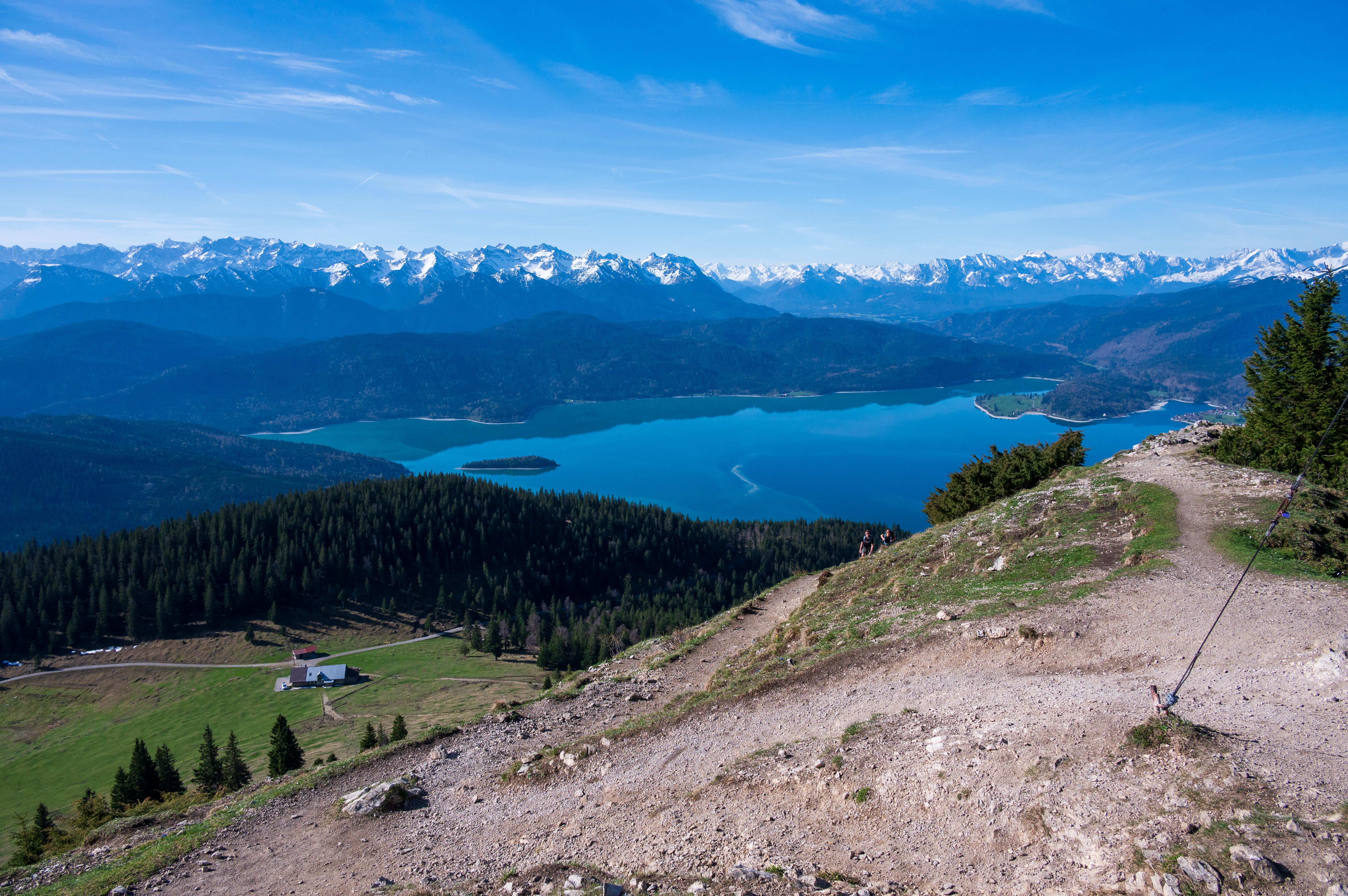 Und geschafft! Ein erster Blick über die Jocheralm zum Walchensee