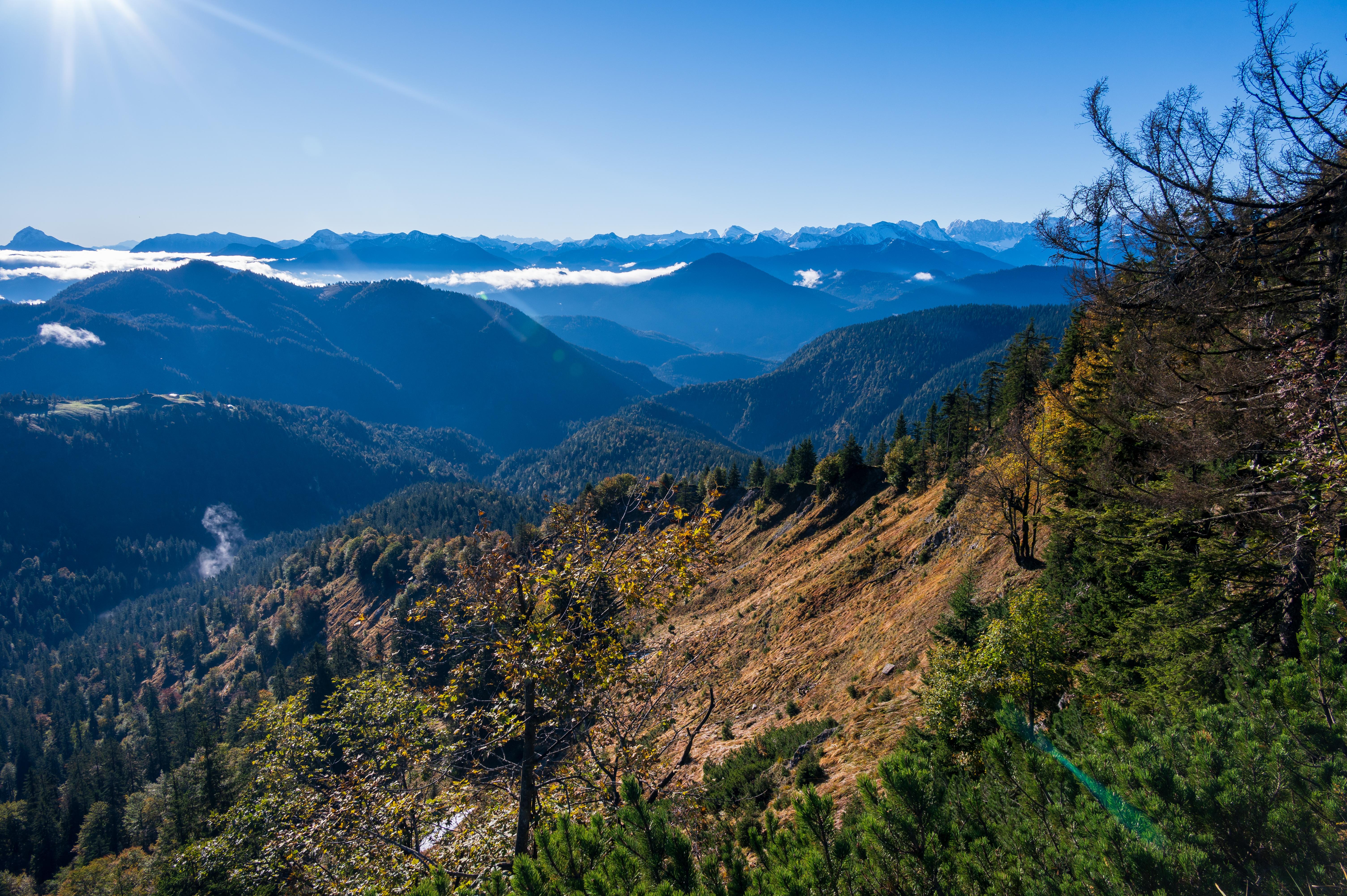 Erste Aussichten nach Osten, ganz dominant die Benediktenwand