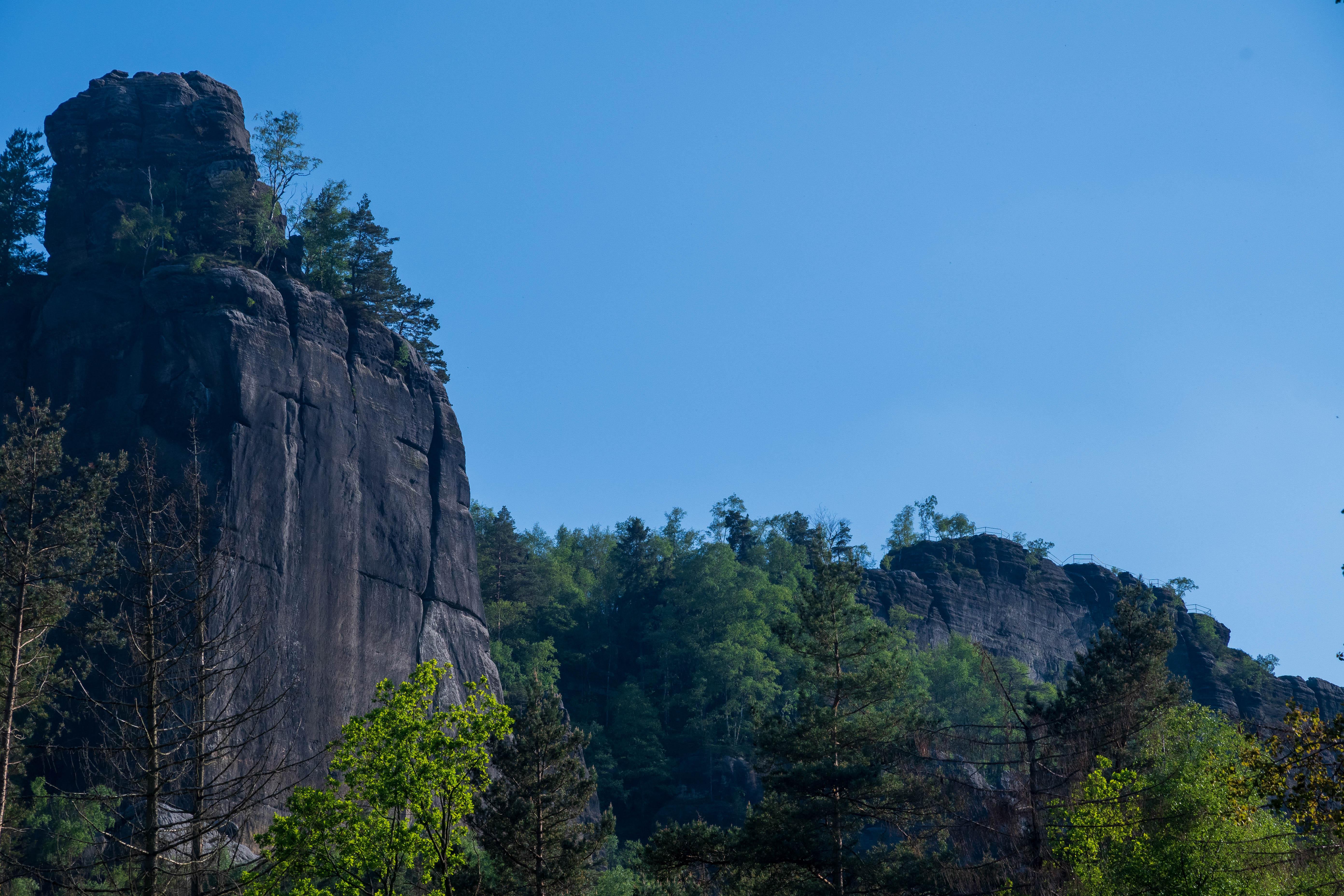Blick über die Elbe, links präsentieren sich Kaiserkrone und Zirkelstein, rechts die Zschirnsteine