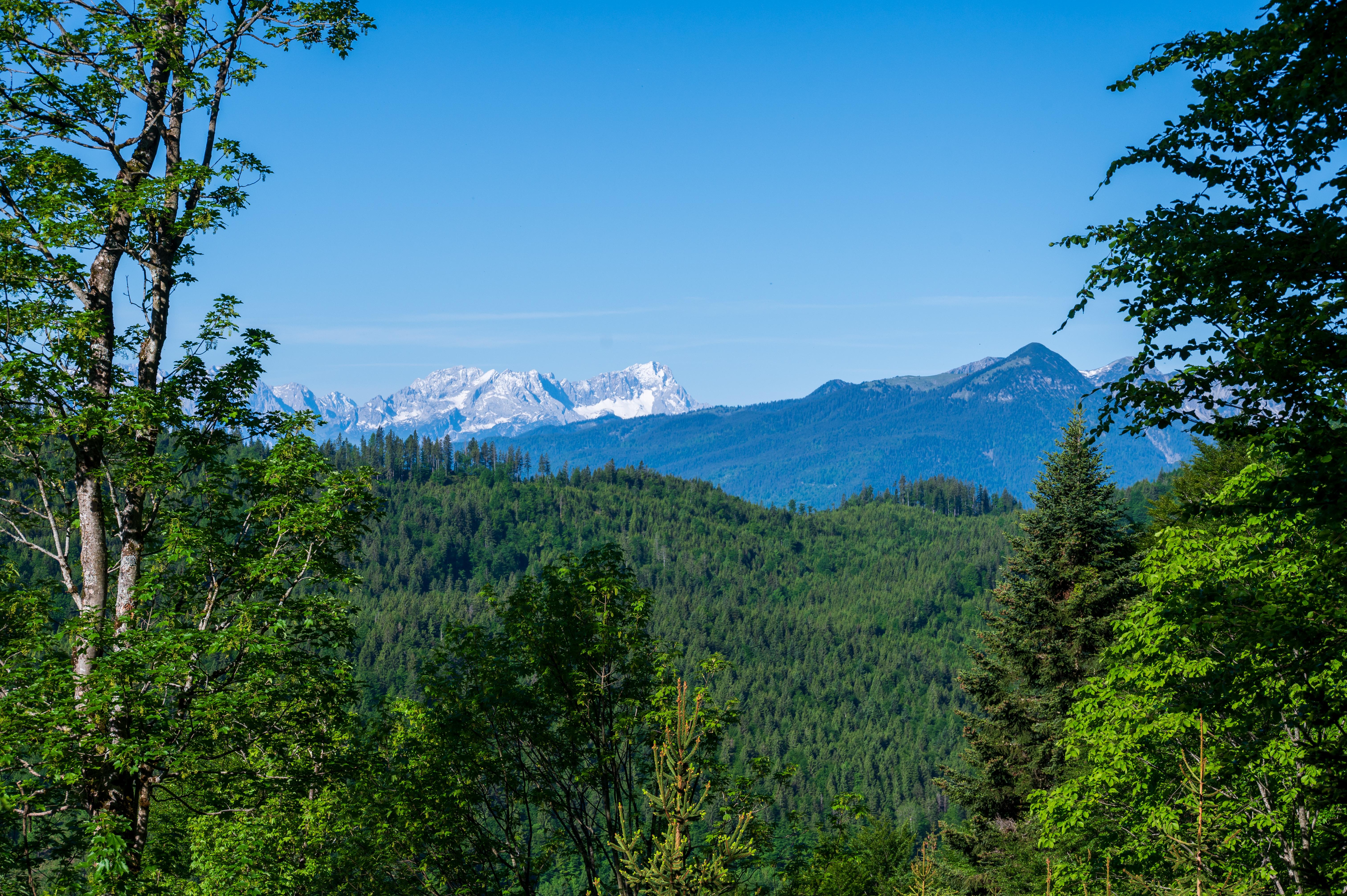 Und jetzt gibts auch einen ersten Blick zur Zugspitze! Noch mit viel Schnee im Höllental...