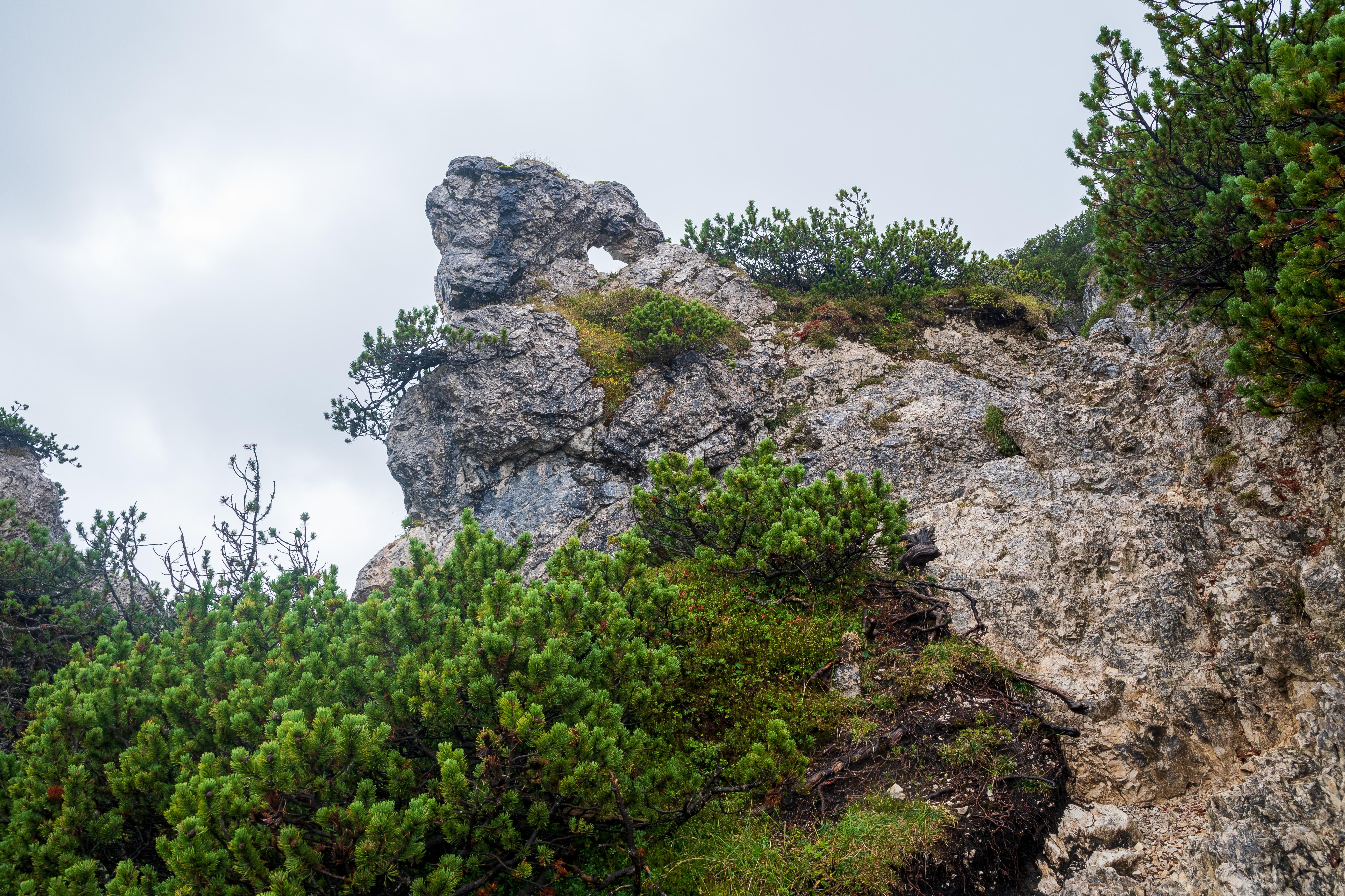 Der Brünstelskopf, und dahinter im Nebel die Notkarspitze