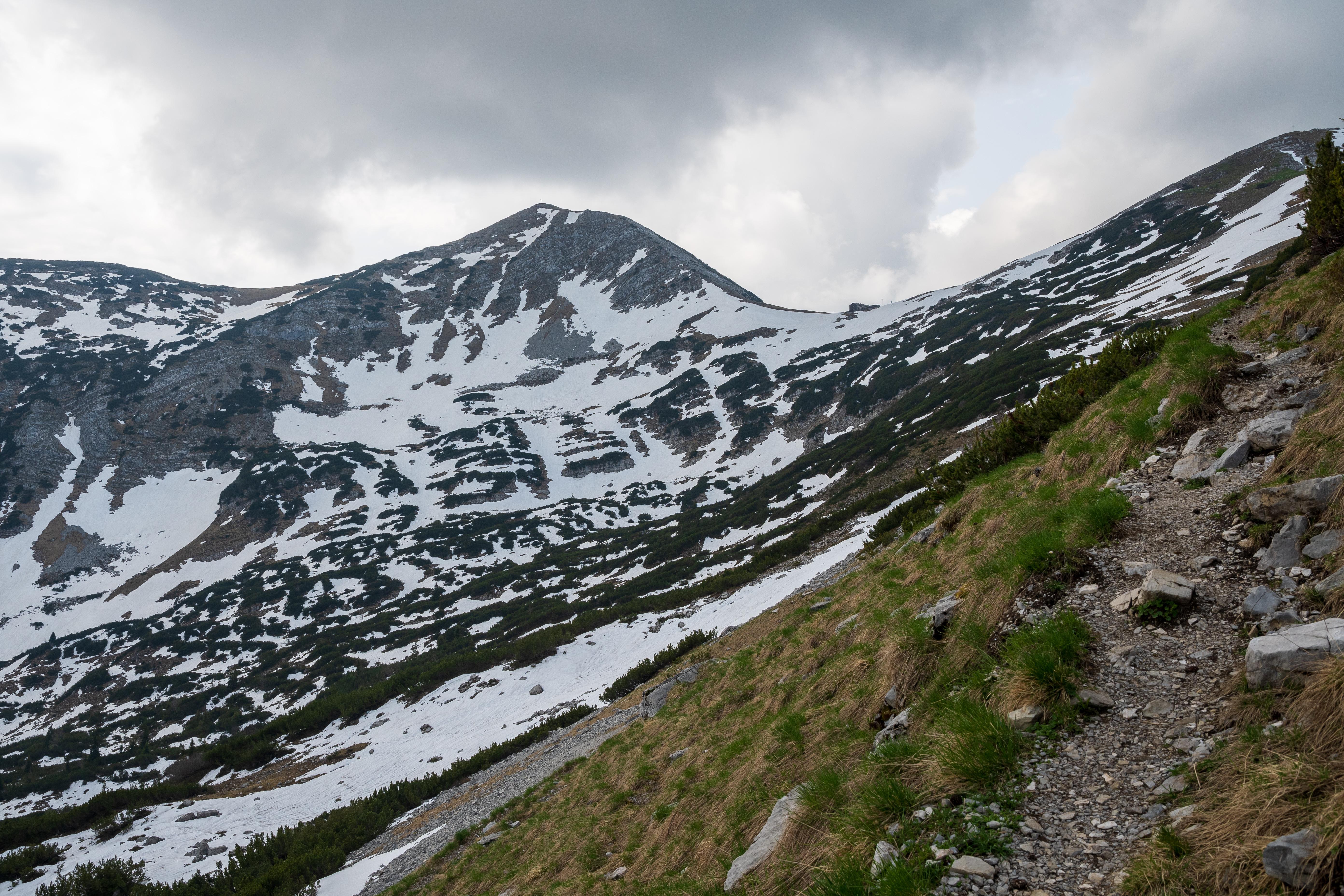 Ein paar Schneefelder queren auf dem Weg zur Weilheimer Hütte