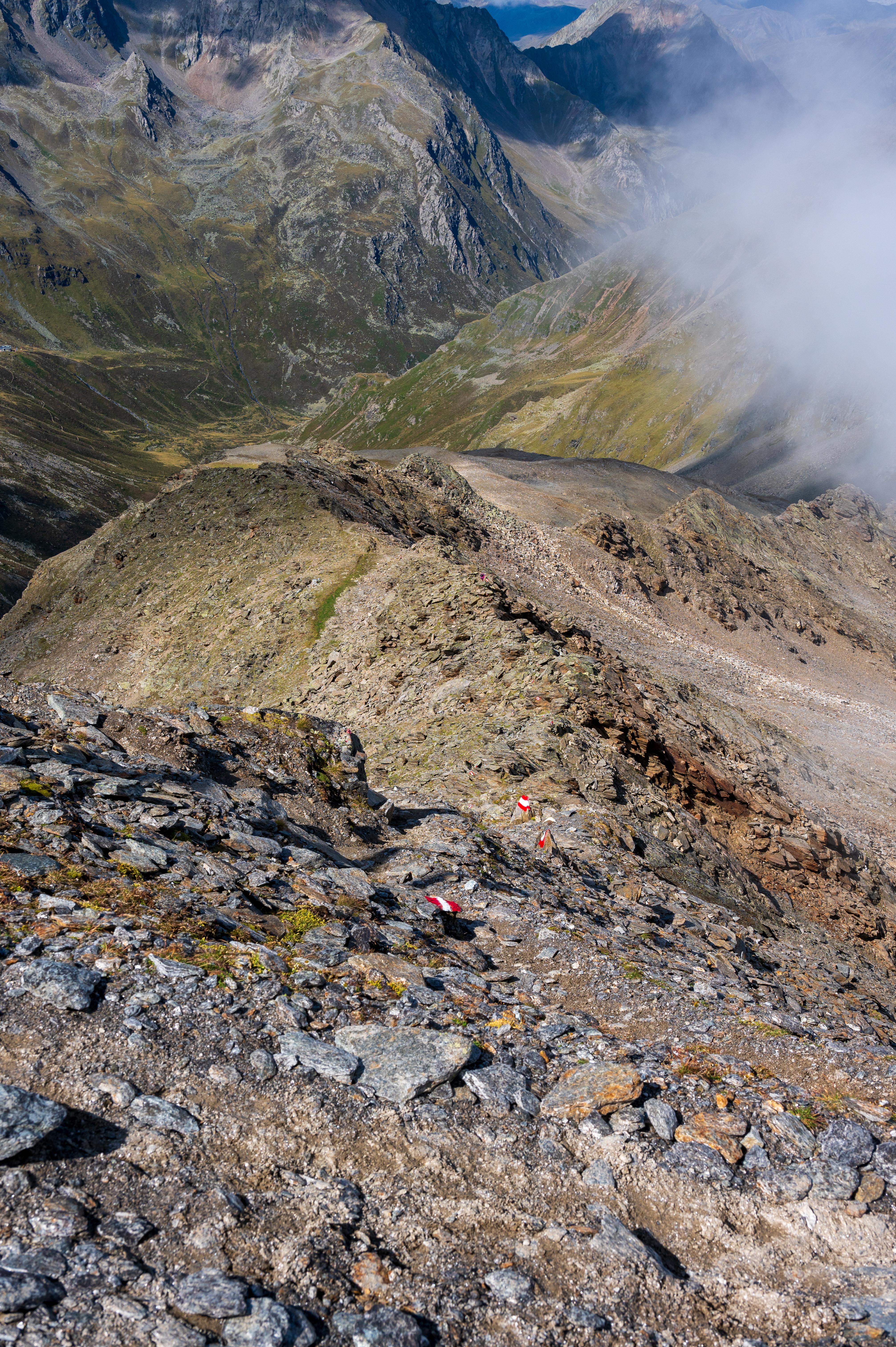 Hinterer Brochkogel mit dem Taschachferner, die Wildspitze in den Wolken