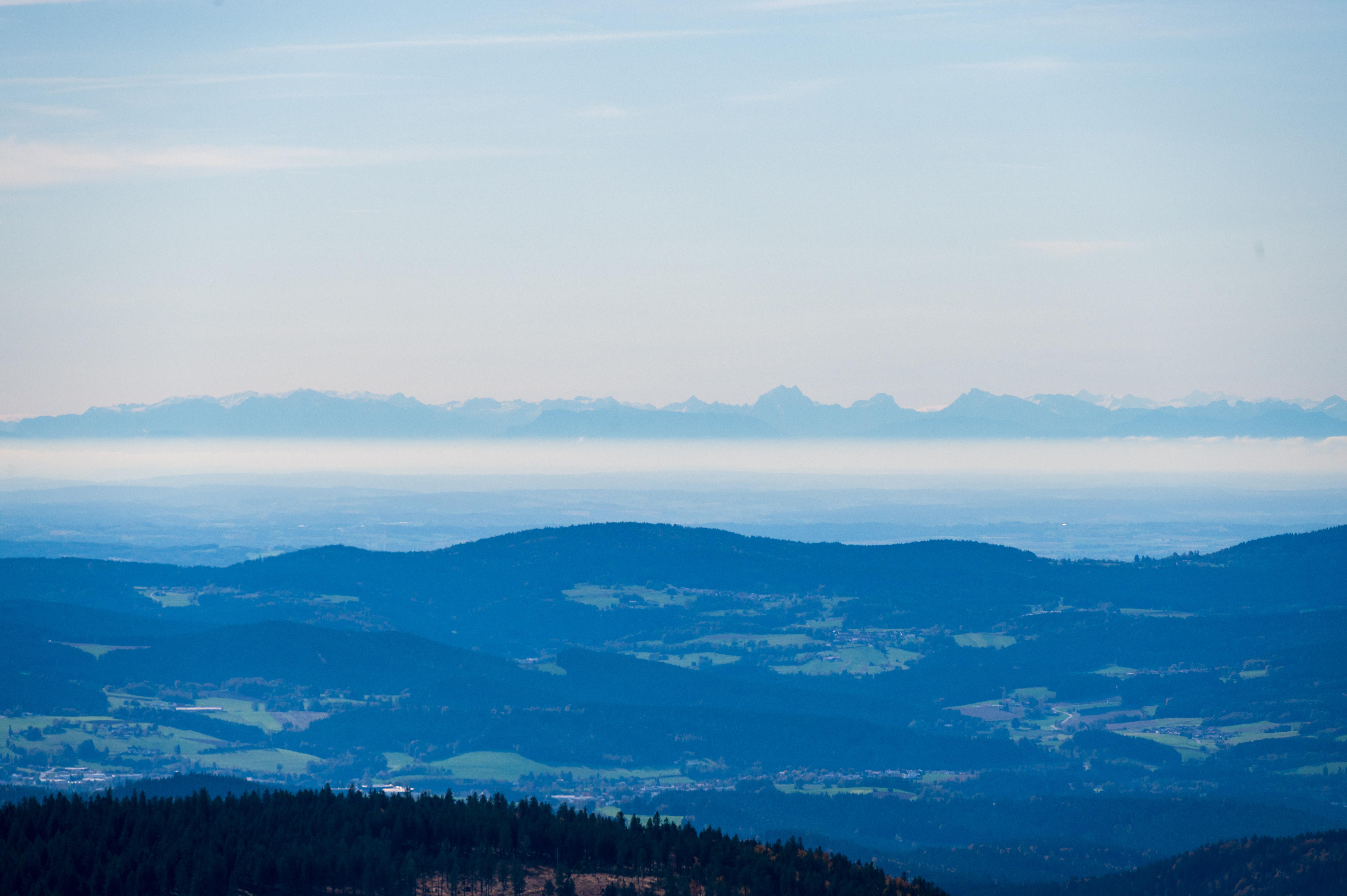 Blick zum Watzmann, mit Hochkönig, Schönfeldspitze, Hochkalter. Dahinter Großglockner und -venedi