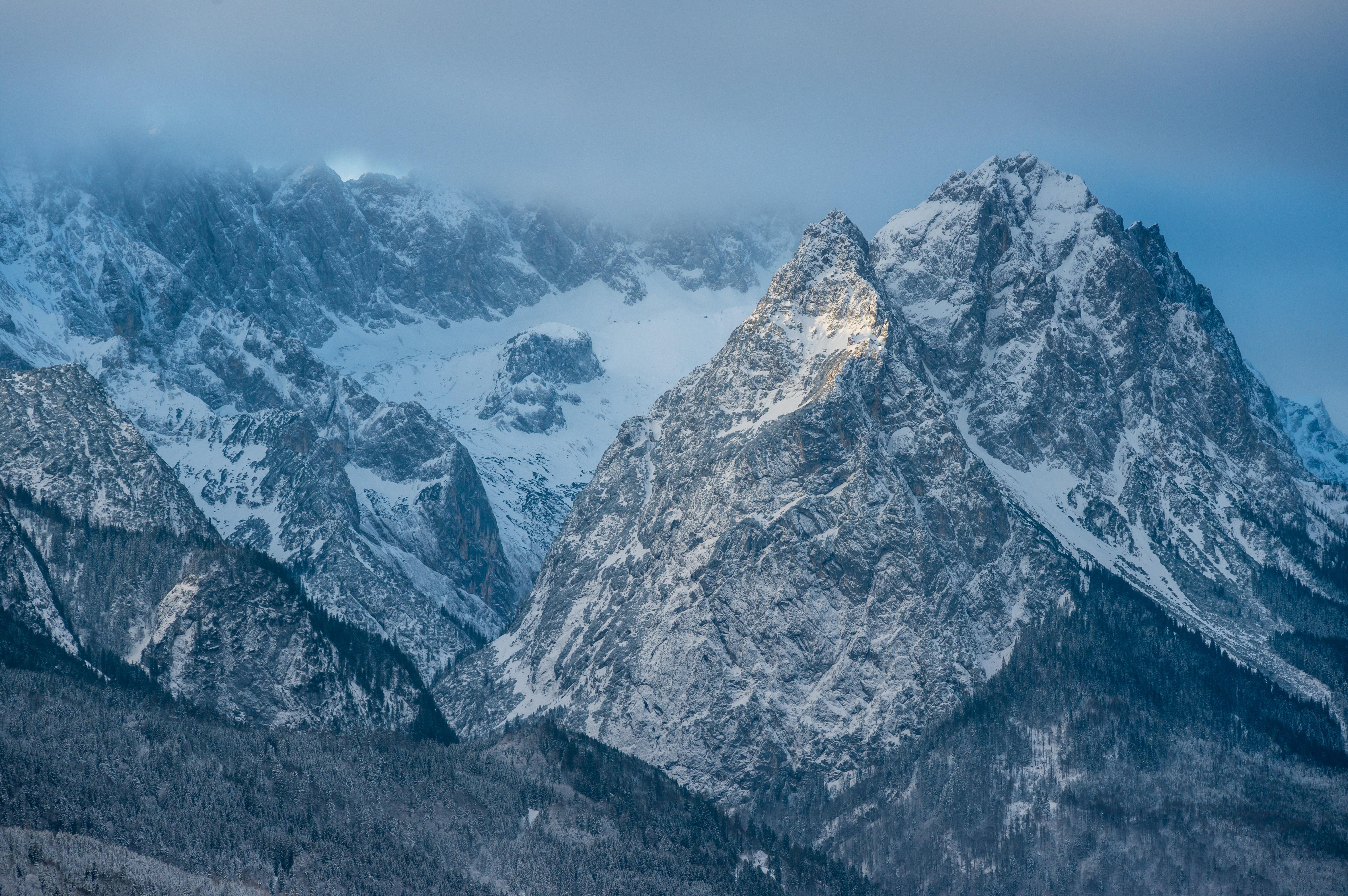 Zugspitze ist noch in den Wolken, nur der kleine Waxenstein hat schon Sonne