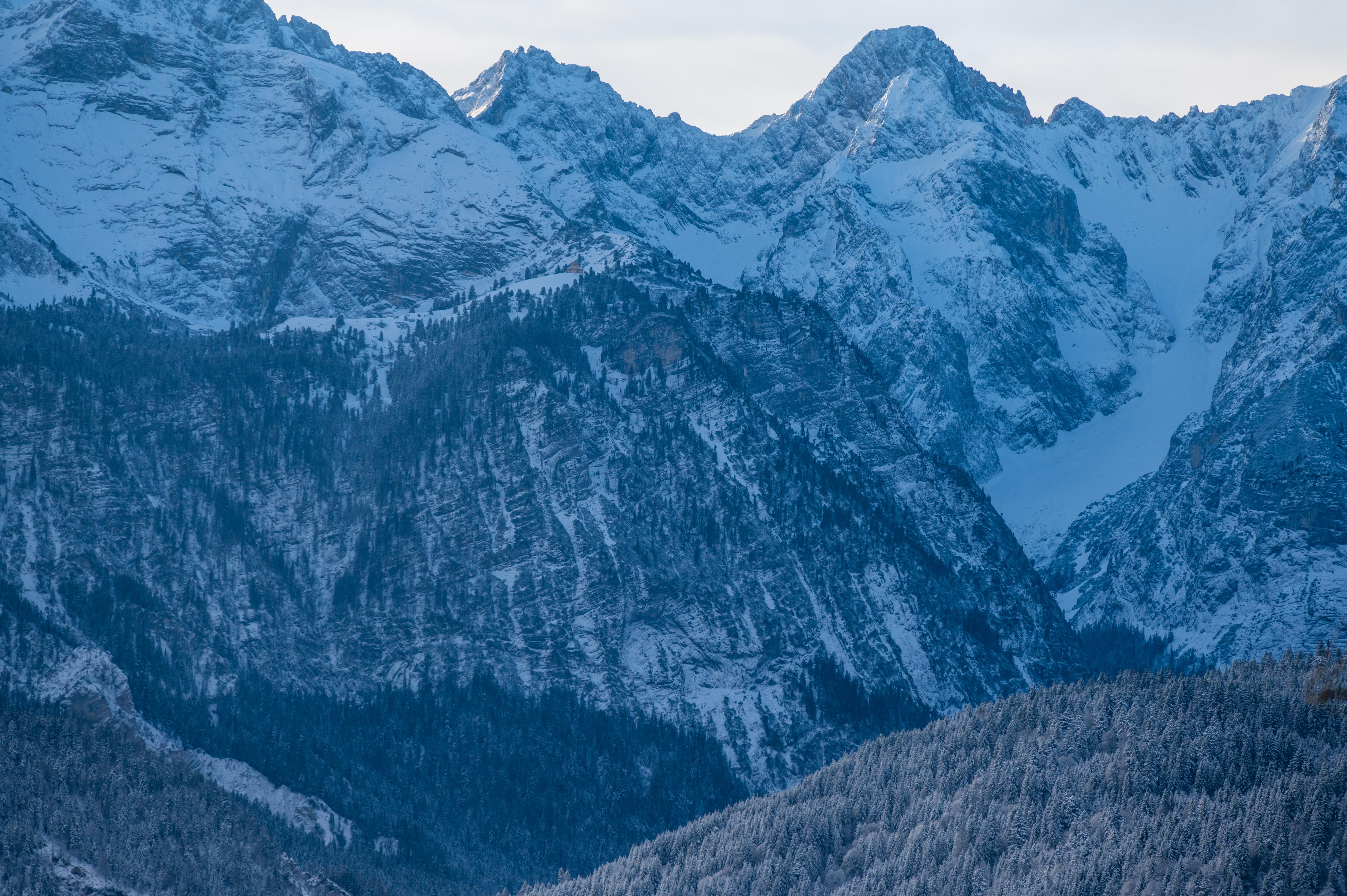 Zugspitze ist noch in den Wolken, nur der kleine Waxenstein hat schon Sonne