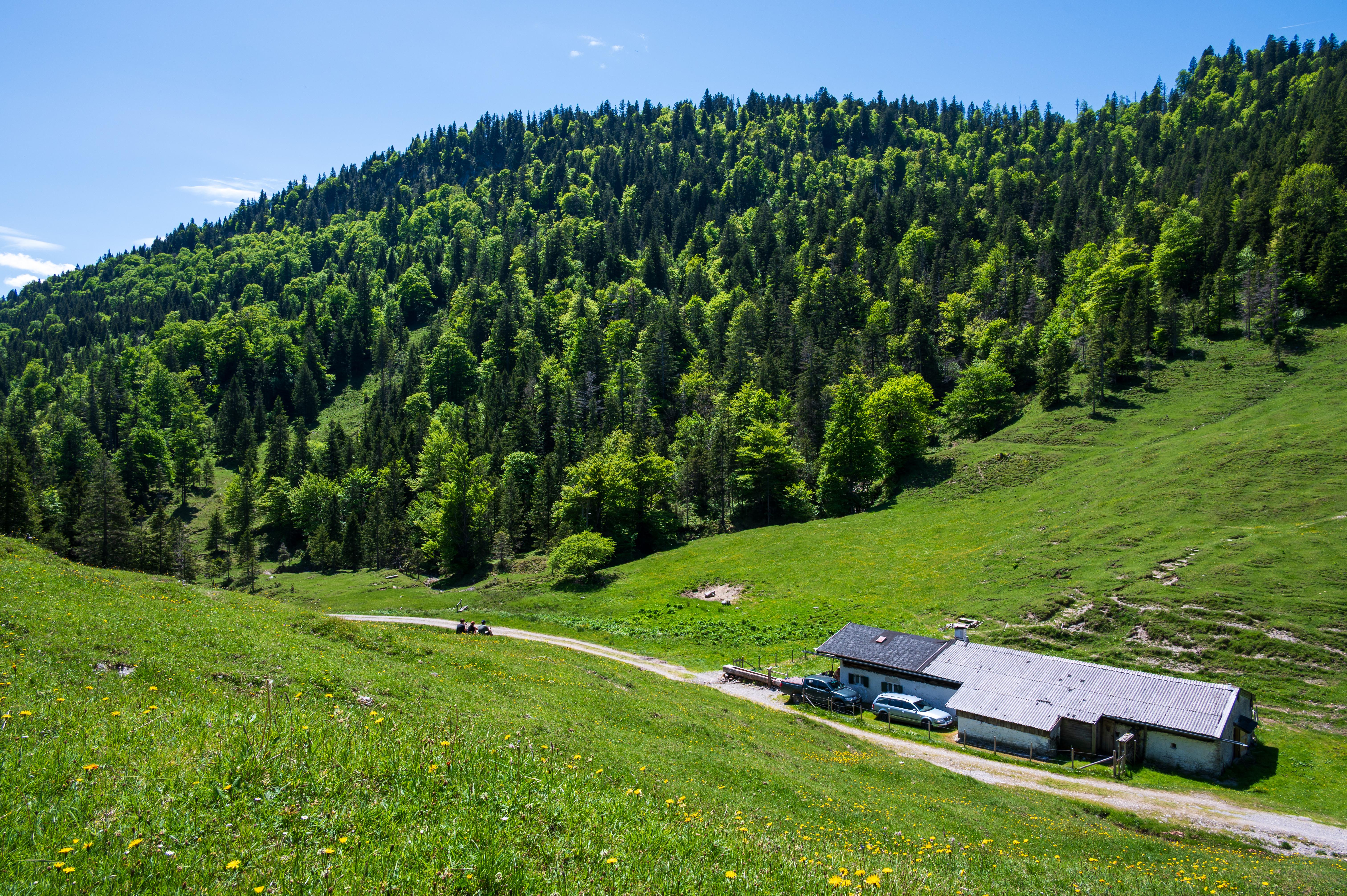 Jetzt noch einmal südlich unter dem Hirschhörnlkopf vorbei zurück zum Parkplatz
