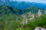 Aggenstein als kleiner Zacken in der Ferne, im Hintergrund Bildmitte das Brentenjoch